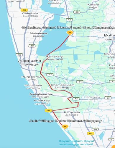Day 9:- Gokulam Grand Resort to Coir Village Lake Resort Alleppey (50 km)